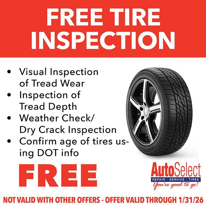 At Auto Select, we do not play games or have fancy gimmicks…The prices shown below or quoted at the shop, ALWAYS includes: Mounting, Balancing, Rubber valve stems, Installation, Disposal of Old Tires, and FREE Tire Rotations every 6,000 Miles when purchasing a set of 4 Tires from us! (In some rare cases, there are additional costs related to resetting a vehicle's Tire Pressure Monitoring System.)